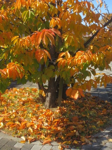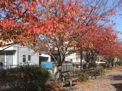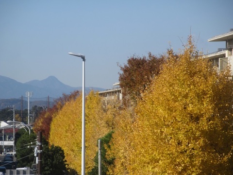 TVでは毎日各地の素晴らしい紅葉が映し出されている。 湘南はまだ暖かく暖房の必要がないけれど 近所でも銀杏や桜が色づいてきている。 今年も色づいたバス通りの銀杏並木、遠くに見える箱根の金時山。 金時山には数回登ったことがある。 山頂の茶屋に寄り大雄山方面へ下るコースが好きだった。 桜並木の紅葉 河津桜の木の下には落ち葉のじゅうたん。 |