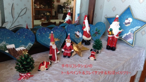 クリスマスシーズンになりました~2025あっという間にクリスマスまであと2週間 クレイ教室はアドベント初日にクリスマスのディスプレイをしてみなさんをわくわくお迎えしています 毎年クリスマスコレクションの箱を開け飾りつけするのは楽しいものです 1995年から3年間(下の子が幼稚園の頃)に制作したトールペイントとクレイの小物がほとんどです 豪華さや華やかさはありませんが手作りの温かさでお迎えしています 松ぽっくりのツリーはたくさん作ってプレゼントしました♪