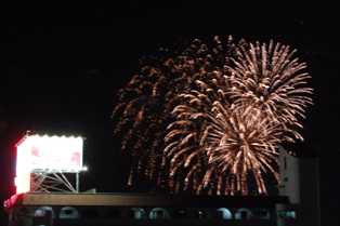 さすがに種類が豊富! 串焼きが30種も! 味わうのももちろんですが・・・どんなふうに作ってるのかな?と興味深々 今度家で七輪で焼いてみよう~きっと美味しいはず♪ 隣の席では若い女性2人組がビールジョッキをがんがん飲み干していました グレープフルーツサワー2cmで酔ってしまう安上がりな私 うらやましい~ 滅多に無い夜のお出かけでしたが ほろ酔い加減でお散歩で帰還 夏日(26℃)の続く沖縄! もう少し風が冷たければ気持ちよかったんですけど・・