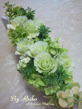 グリーンの爽やかな薔薇 「ライム」という葉野菜みたいな薔薇です 秋色あじさいとビバーナムを添えてグリーンだけのアレンジ クレイアート教室ビクトリアンはカリキュラムはありますが みなさんのお好きな課題を季節に沿って作っています このアレンジは3年前にサンプルしあげたのに どなたも「素敵!好きです♪」といいながら作成者なし 先日新入荷した花器にアレンジしてみると みなさんの脚光をあび 全員つくることになりました! 第一号がこのReikoさん作 同じ課題でも個性がでて違ったものになるのが楽しいです 私の作品とも見比べてみてくださいね 初夏の爽やかアレンジ にほんブログ村 |