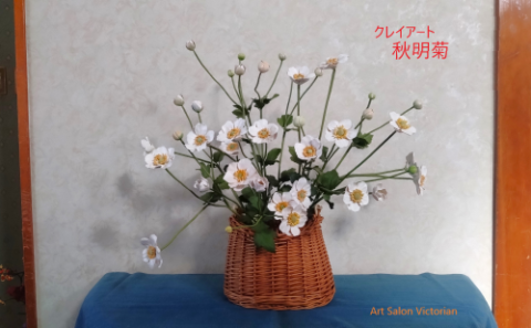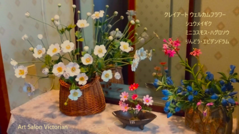 6月末にコロナにかかり一か月入院 寝たきり状態になり介護4になってしまいましたが本人が施設拒否して実家で介護生活が始まりました?! 夏休みはたまった教室のお仕事ができると意気込んでいたのですが どんどん忙しくなってしまいブログアップもままならず(;^_^A 9月16日アップの「クレイアートNO.440…秋の彩り2025」続編を遅ればせながら・・・ 教室の秋を彩るウエルカムフラワー 玄関靴箱上の小コーナー 人気のシュウメイギク(2006)とミニコスモス(2004) りんどう(2010)とエピデンドラム(2000)のアレンジです ミニコスモスとシュウメイギクは今年彩色し直して新品になっています 2002年に京都の庭先で初めて出会って そのかわいらしさに虜になりました 満を持して2006年ビクトリアンオリジナルが完成 2007・2013・2014年にブームが再来して多くの生徒さんが制作したみなさんに人気のお花です