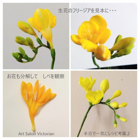 数名が制作中のフリージアでしたがレシピを作ったのが20年以上も前で細かい部分がうろ覚えでしたので 生花を見て再確認のため即購入!