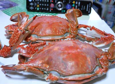 活きたワタリガニを浜茹でにしてもらいました。 卵もタップリでずっしり重く、最高に美味♪ 夫婦で沈黙の状態が・・・(笑) 過去最高の味だったかも(^ヘ^)v