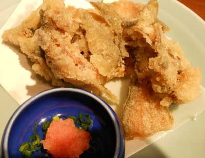 食べ終わったあとの頭と骨は唐揚げで骨せんべいに! これが美味い♪