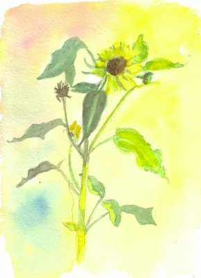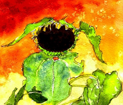 「真夏の暑さに憔悴しきったひまわり」という設定で描いてみました。