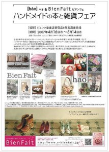 やっぱりジュンク堂のイベントバッグと小物が出来ました。 スミレのバッグと、このためにリネンで作ったアネモスも登場します。やはり現物見ていただきたいですもんね。ぜひお近くにお寄りの際は、お手にとってご覧いただけたら、とてもうれしいです。 昨日のコサージュ、やっぱり写真撮り直しました。このままプレゼントに出来るようにワイヤーの籠に入れてしてみました。うふ、かわいい~。手加減で一つひとつ違うので、お気に入りを見つけてくれたらうれしいです。このピンクのリネンの方、見る角度や、光量、光源によって、微妙に色が違って見えます。精神状態にも拠るのかなあ? ピンクには見えないかも・・・という時もあり、いや、やっぱりピンクだろう。ピンクにしか見えない! という時もあり。不思議なリネンです。自分で、あまり大きいのは気恥ずかしいので、直径8cmぐらいの小ぶりなコサージュです。バッグにつけたり、帽子につけたり、もちろん胸元にも。 「ハンドメイドの本と雑貨フェア」というタイトルで、ポスターもできました。そのうちお見せしましょう。 ・場所:ジュンク堂 新宿店 ・最寄り駅:新宿駅三越新宿店内 8階 ・営業時間: 午前11時~午後9時 ・期間:4月16日(月)~5月14日(月)/バッグを展示・販売 ・ジュンク堂新宿店→http://www.junkudo.co.jp/ ![]() |