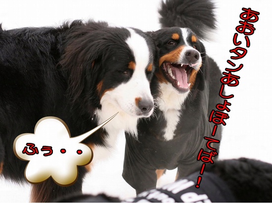 真剣な二人 ^^ でもね最後はラージが引いた! セラのコングボールだしラージはお姉ちゃんだしね ^^ 遠慮して譲ってくれてありがとう~~~♪ 仲間わんこの中で一番勝気なチャンピョンはセラかも・・(T_T) ▼すごいこういうときはセラもお利口に見えます ^^;
