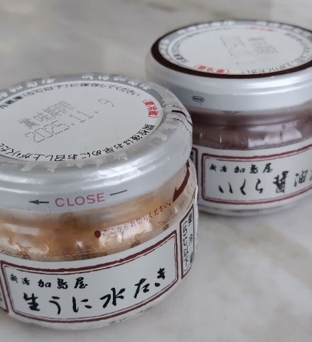 贈り物新潟の生徒さんからの贈り物 老舗 加島屋さんの瓶詰めセット 秋鮭のイクラと雲丹 「新米と一緒に故郷を味わってください」 早速雲丹は炊き込みご飯に イクラはそのままミニセイロ丼に 妹家族と口福時間 ありがとうございました。 日高は秋を通り越して初冬 散歩道にはたわわにみかん 朝 5時半の風は手袋が必要なほど 今日も楽しい一日でありますように |
