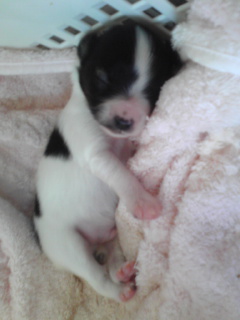 2009.10.1生まれの男の子バニラ(INT.CH直娘)1.9キロ×JKC.CHプリンス2.6キロ 生後38日現在680グラム性格は今のところ明るそう お顔は丸顔で可愛いタイプ...コートが伸びそうです オーナー様募集中です ネックラインが綺麗です |