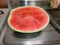 画像は、毎日の労働を癒してくれる家庭菜園のスイカです。毎日、食べています。