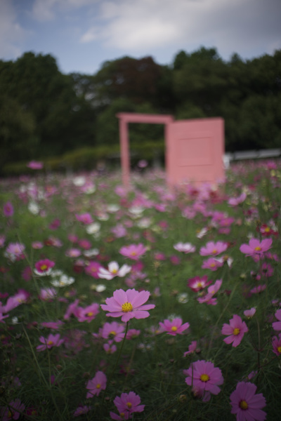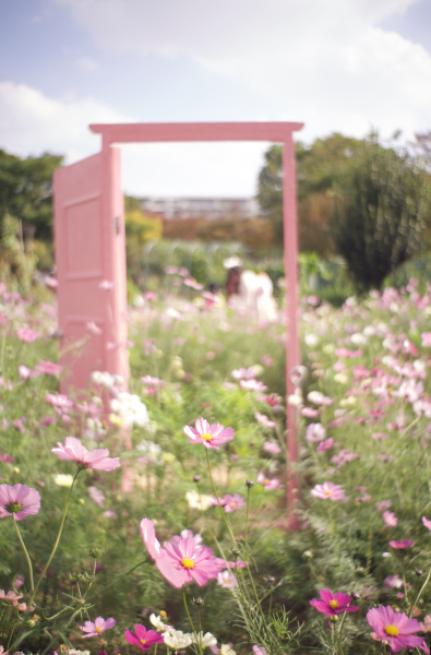 pinnkの扉とコスモスと少女