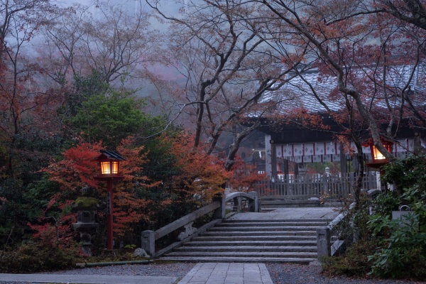最初に訪れたのが・鍬山神社です。もうすでに散りに入り終了間近という感じでしたが霧が出て良い感じでした。