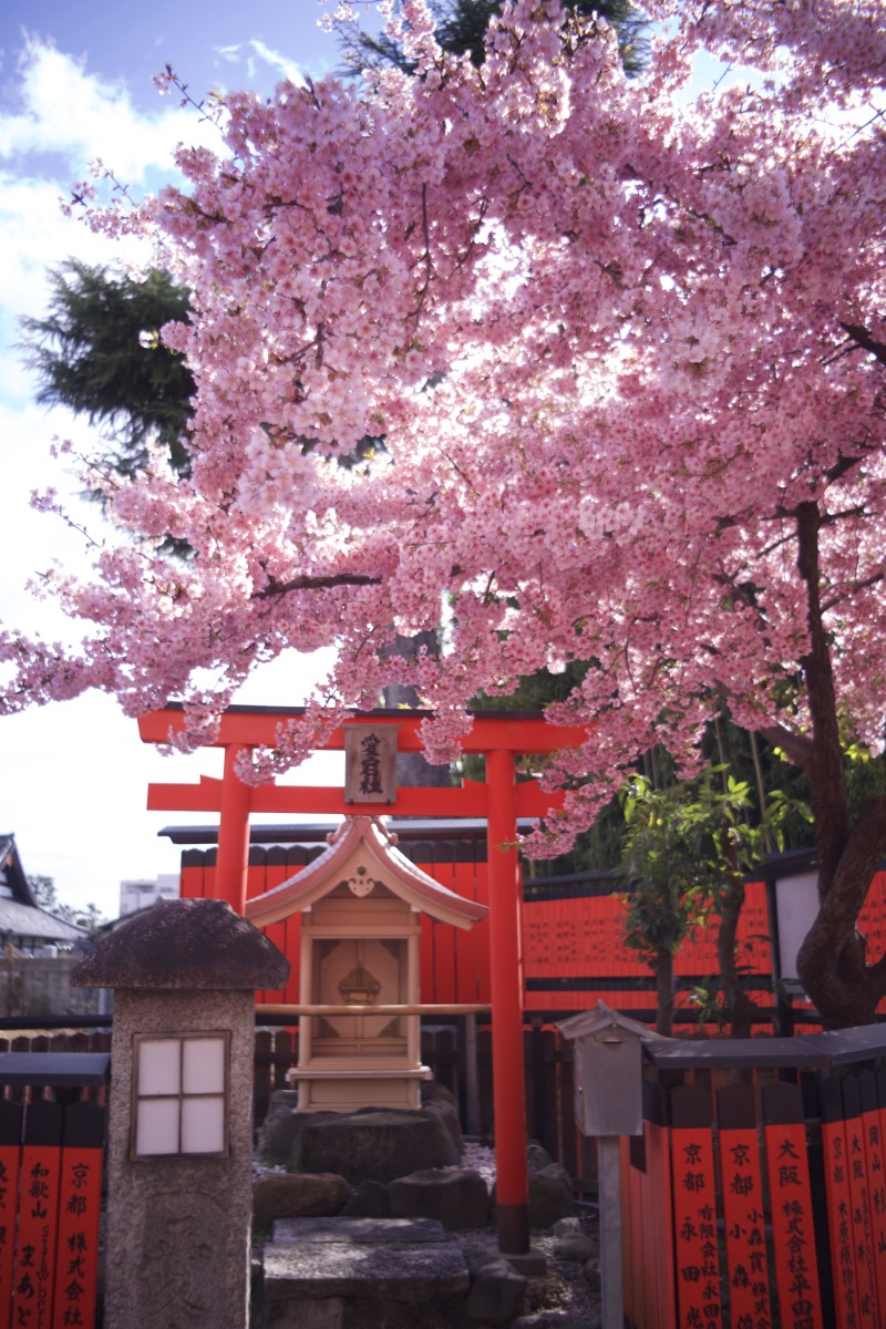撮影場所 京都 車折神社 河津桜