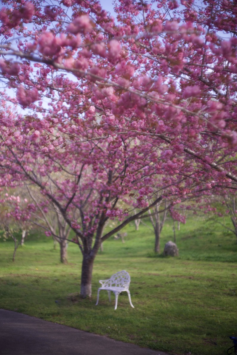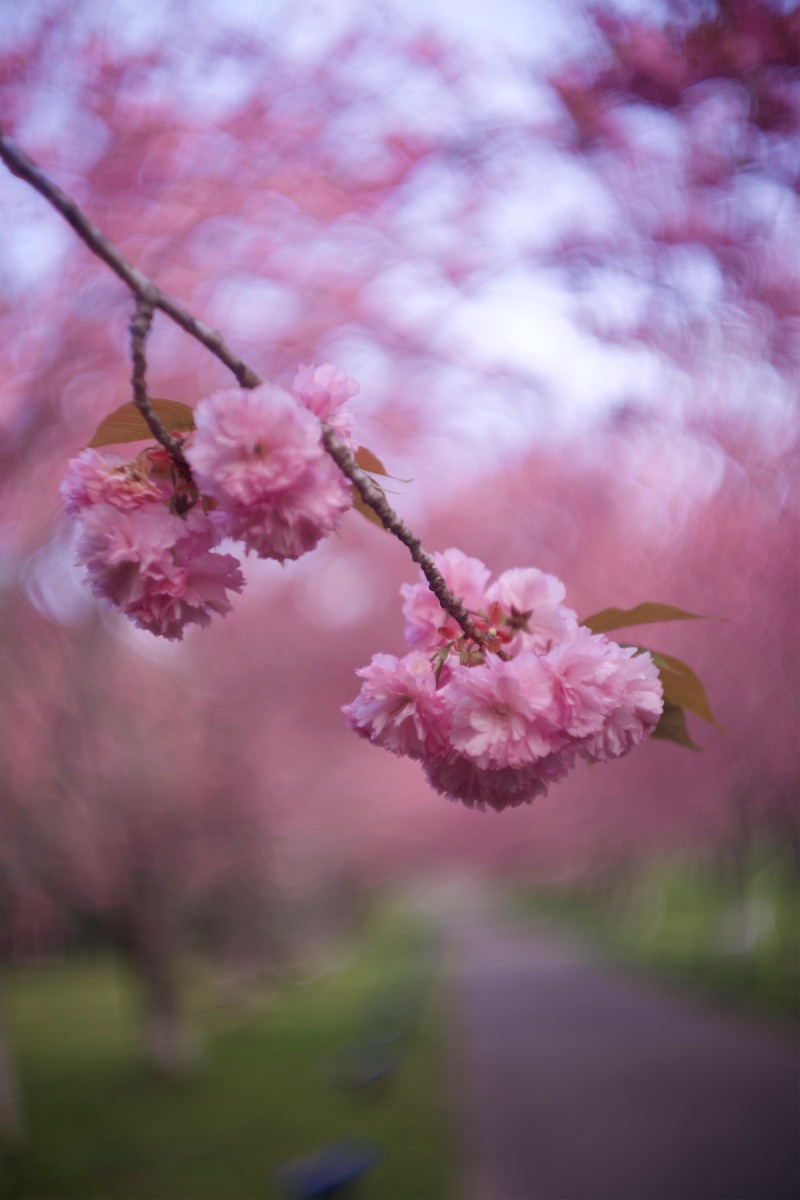 ここに訪れて3回目で満開の八重桜に出会えました。