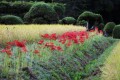 旧松山町(庄内藩の支藩)曹洞宗總光寺前の彼岸花。農家さんが彼岸花が終えるまで、稲刈りを一時休んでます。向こうの杉は県指定天然記念物總光寺の『きのこ杉』