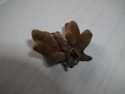 ヌルデの葉にヌルデシロアブラムシが産卵して出来た虫コブ「ヌルデミミフシ」ですよ。