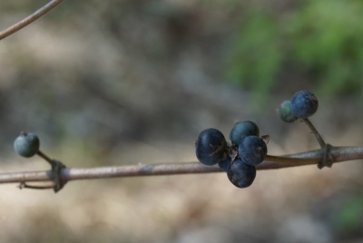 どこにもあるスイカズラ科のスイカズラをわざわざ鉢に植えたものとは考えにくく思っていたのですが、マツブサ科サネカズラなら、その実が面白いことから考えられるものと思います。その経験が少し頭に蘇りました。覚えがあります。サネカズラです。