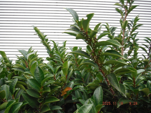 これはつぼみを見る限り、ヒサカキではないかと思うのですが、葉が大きく、葉密度も極端に多いようなのですが、ヒサカキでよいのでしょうか