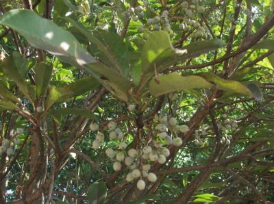 長浜の庭園にある樹木です。みたところユズリハににています。しらべたらホルトノキかなと思いましたが、実が違うようなのです。よろしくお願いいたします。
