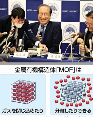 2025年のノーベル化学賞を京都大特別教授の北川進氏(74)ら3氏に授与すると発表した。
