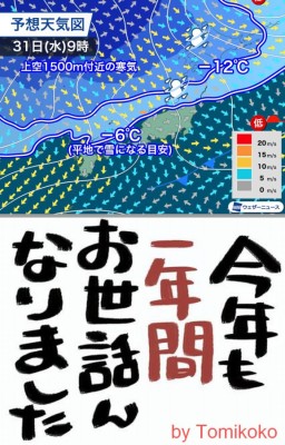 年越しの昨晩から元日にかけて寒気が南下しています。