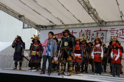 「手づくり甲冑・大崎塾」出陣式。主な原材料は段ボールらしいのですが、見事な出来映えです。