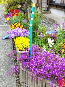 皮膚科処方箋薬局で薬を待つ間に🚶♀️花が多く綺麗な庭のお宅があり写す 肌寒いが歩くと丁度良い薬を頂き内科 空調が効き厚着の人が羨ましい 採血時は半袖で正解と思う 薬局で12錠足りない薬があり後日取りに行く 軽四は駐車するのがとてもラク!
