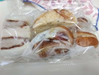 10時遠回りして🚶♀️➡️スーパー パン屋さんの割引セット600円ほど ヒレカツサンド、ホットドック、グラタン、メロンパン其々2分の1シェア?昼食用に購入