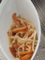 お向かいで頂いた切干大根 さつま揚げを細く切り水だけで調味料を使わず調理 甘みがあり美味しかった 蓋をせずチンしたら先に焦げ目 何度もチンはいけないことのようです
