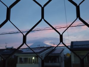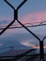 早朝の富士山です 朝焼けはこのまま濃くならずでしたが満足 山小屋の明かりもみえました