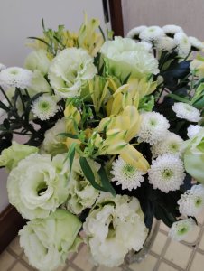 我が家の花瓶のほうが素敵な花束に合うと思い選びましたが 花瓶が見える写真が この1枚です