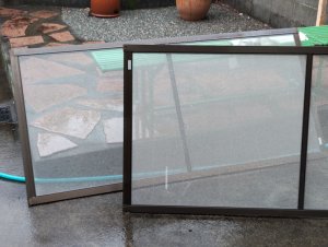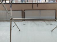 2階もベランダに置き 汚れがキツイので強い雨を期待している 網戸を立てて置くほうが水切りもできしまいやすいと考えた