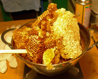 相方の友人に日本ミツバチを飼ってる方が居て、蜂蜜を搾る前の状態をお初に拝見…