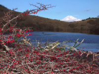 さらに奥地に進んで出合ったイイギリの赤い実も、この初冬の青空に映えて〜♪