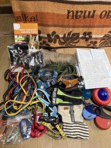 お手紙と共にペットシート、ハーネス、リード、おもちゃ等を頂きました。