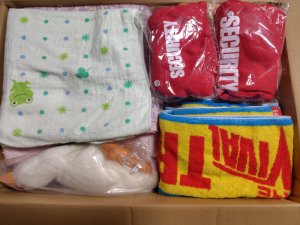 タオル・バスタオル・ティシュ・冷んやりマット・滑り止めマットをいただきました。