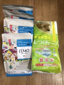 犬用フード、トイレシート、マナーウェアをいただきました。
