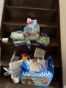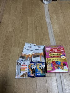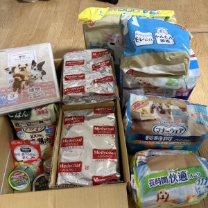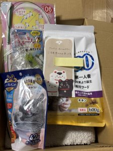 トイレシート、マナーベルト、芳香剤、おやつ等を頂きました。