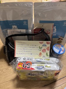 ペットシート、マナーウェアー、犬用フードを頂きました。