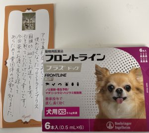 犬用フロントラインプラスのご支援をいただきました。