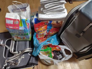 ペットシート、マナーウェア、犬用フード、うんち袋、予防薬、切手、テレカなどを頂きました。