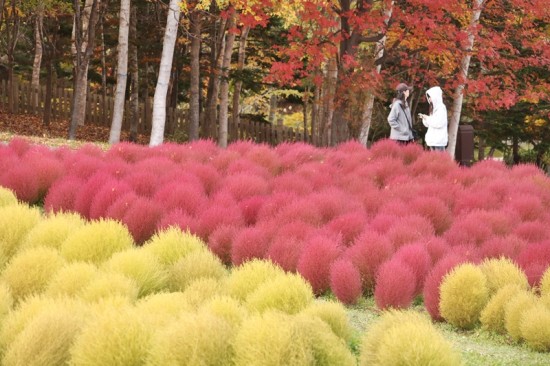 あえて緑のコキアも並べたようです。
