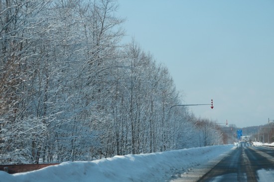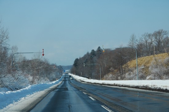 先月半ばの苫小牧寄りの道ですが、南面は雪がありません。