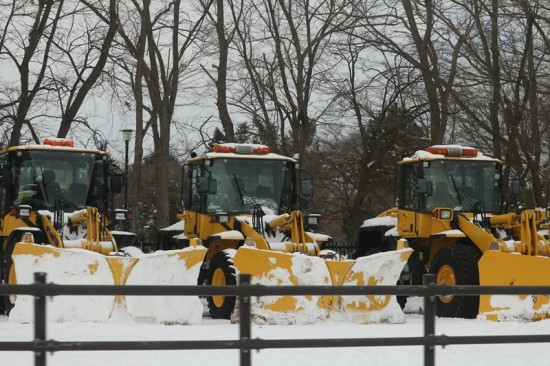 いつも公園の北側の駐車場を使いますが、閉鎖されていて、除雪車の待機場所になっていました。