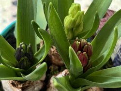 3色ソロって咲きそうなヒヤシンス