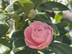 草むらの横でツバキ咲き出してた