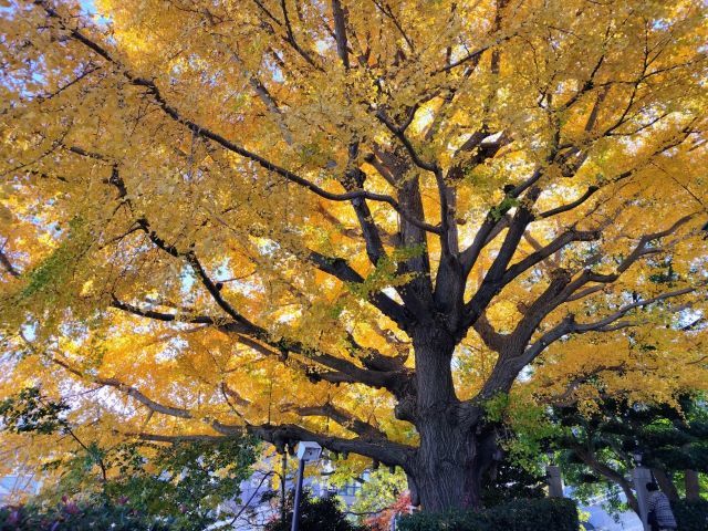 横浜スタジアムの日本庭園も紅葉が見ごろになっています