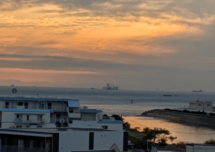 上の方の離れた雲迄茜色に染まって素敵ね。
