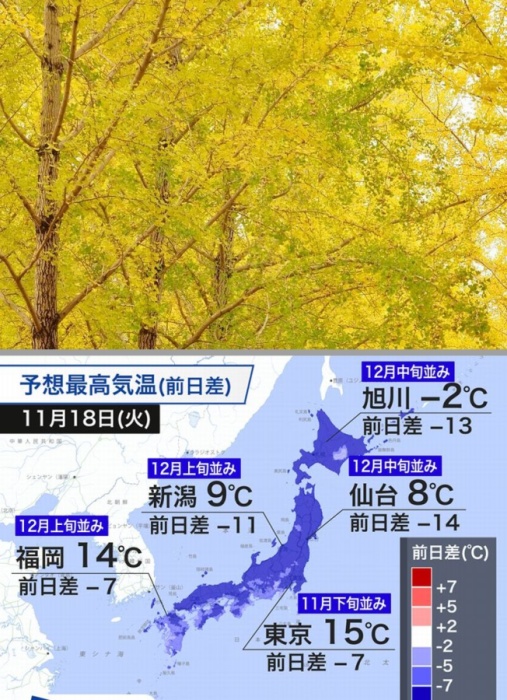 名古屋市の最低気温は今朝は4℃、大阪市は7℃と、今季最低をさらになりました。