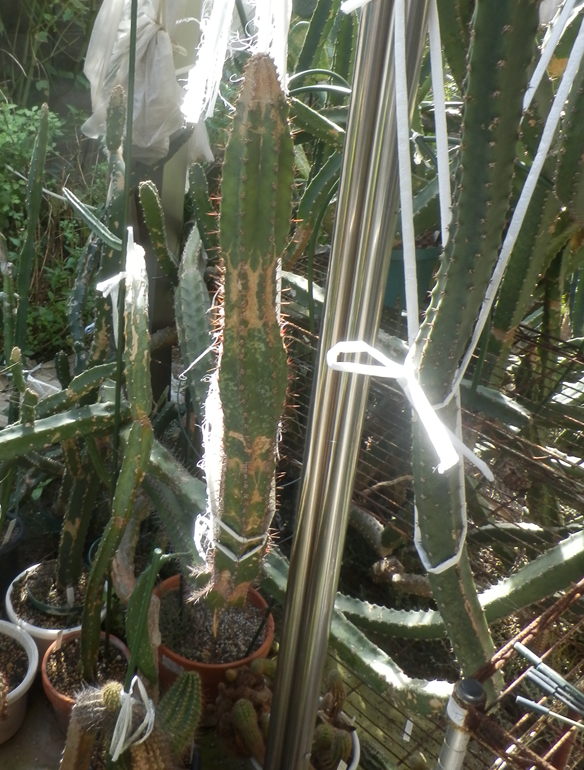 ウォーターメロン 10月28日(火) 20:23 袖ヶ浦に接ぎ木している袖ケ浦実生から出た7稜タイプです。 刺も長く、袖ヶ浦よりも太くなります。 花は袖ケ浦より2回りほど小さい白花です(花盛丸の花によく似ています)。 1度袖ヶ浦と相互交配しましたが、どちらも結果しませんでした。 |